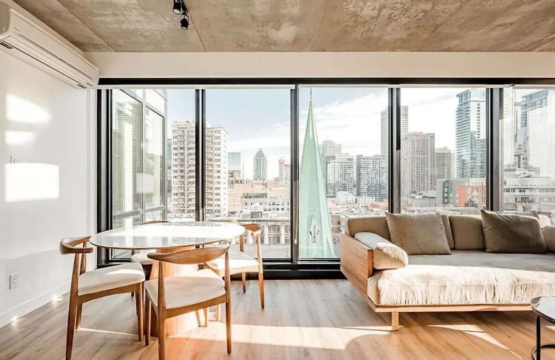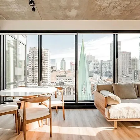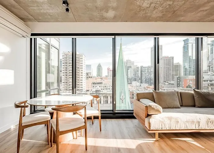 Appartement Avec Vue Panoramique Au Coeur Du Centre Ville De Montreal provides easy access to various city attractions, such as the Écomusée du Fier Monde, situated nearly a 5-minute walk away. Staying in the apartment, nestled a mere 0.7 km from the National Library and Archives of Quebec, guests can relax on a terrace.